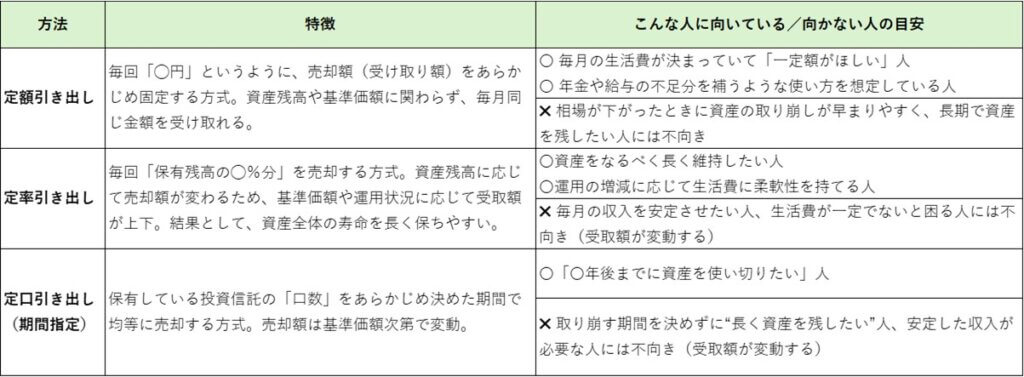定額引き出し vs 定率引き出し vs 定口引き出し— それぞれの特徴